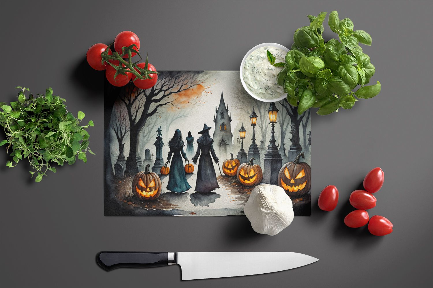 Home > NEW Vampires Spooky Halloween Glass Cutting Board Decorative Tempered Glass Kitchen Cutting and Serving Board Large Size Chopping Board